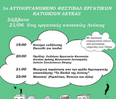 Το φυλλάδιο για το φεστιβάλ στις εργατικές κατοικίες της Λεύκας στην Πάτρα