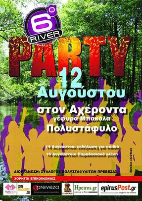 Στις όχθες του ποταμού των ψυχών, στην τοποθεσία Γέφυρα Μπακόλα στο Πολυστάφυλο Πρέβεζας θα διοργανωθεί και φέτος, μία από κορυφαίες για όλη την Ήπειρο, ψυχαγωγική εκδήλωση για τη νεολαία (αλλά και όσους αισθάνονται νέοι) το 6ο River Party.