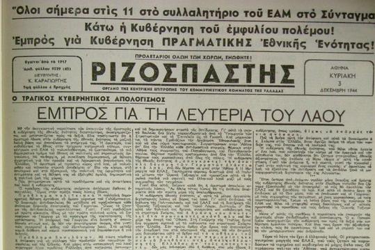 Αν η εξέγερση του Πολυτεχνείου, τον Νοέμβρη του 1973, ήταν η αρχή του τέλους της χούντας των συνταγματαρχών και το ξεκίνημα της Μεταπολίτευσης, η Κυριακή 3 Δεκεμβρίου 1944 είναι το πέρασμα από έναν αμυντικό πόλεμο (υπεράσπιση της επικράτειας μας) στον Εμφύλιο. Εκείνη τη μέρα διοργανώθηκε παλλαϊκό συλλαλητήριο στην πλατεία Συντάγματος.