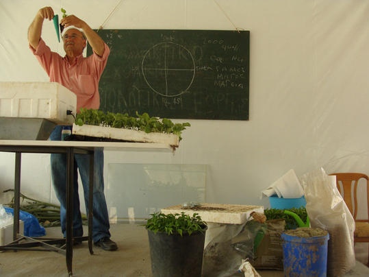 Επιδίωξη του Οικοσχολείου είναι οι εκπαιδευόμενοι να αποκτήσουν συνολική γνώση της Οικολογικής Γεωργίας. Πρακτική κάθε ημέρα με τον Θοδωρή Αρβανίτη (προετοιμασία εδάφους, λίπανση, φύτεμα, σκάλισμα, κλάδεμα, συγκομιδή, χειρισμός μηχανημάτων και εργαλείων κλπ)