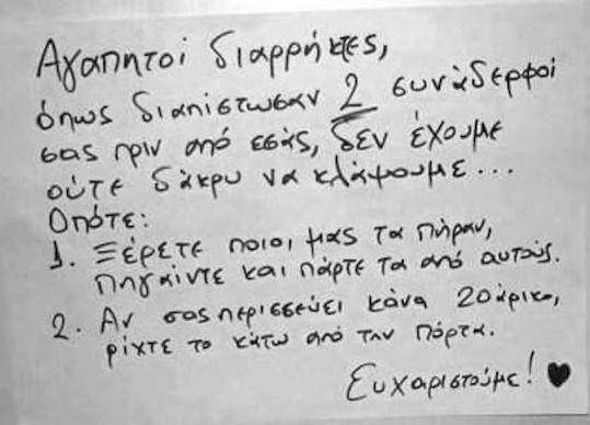 ΑρχικήΕΛΛΑΔΑΕπιστολή στους... διαρρήκτες ΕΛΛΑΔΑ #Tagsδιαρρήκτεςεπιστολή Επιστολή στους… διαρρήκτες 26 Ιουνίου 2015 251 FacebookTwitterPinterestWhatsAppEmailΤυπώνω Επιστολή στους… διαρρήκτες #Tagsδιαρρήκτεςεπιστολή FacebookTwitterPinterestWhatsAppEmailΤυπώνω Προηγούμενο άρθροΕρωτική εξομολόγηση στην Ελλάδα από αυστριακή εφημερίδα!Επόμενο άρθροΗ Ύβρις της Αριστείας. Του Χάρη Ναξάκη ΣΧΕΤΙΚΑ ΑΡΘΡΑ ΕΛΛΑΔΑ Συναγερμός για φέτα με λιστέρια – Ανακαλείται άμεσα από τον ΕΦΕΤ 9 Απριλίου 2026 ΕΛΛΑΔΑ Νέα απάτη με SMS για το Fuel Pass – Tι να κάνετε αν λάβετε μήνυμα 9 Απριλίου 2026 ΕΛΛΑΔΑ Νέοι κανόνες για το κουτί πρώτων βοηθειών του αυτοκινήτου: Τι πρέπει να έχεις από 18 Ιουνίου – Πρόστιμο 30€ 8 Απριλίου 2026 ΑΦΗΣΤΕ ΜΙΑ ΑΠΑΝΤΗΣΗ Ακύρωση απάντησης Σχόλιο: εισάγετε το σχόλιό σας! Όνομα:* παρακαλώ εισάγετε το όνομά σας εδώ Email:* έχετε εισάγει εσφαλμένη διεύθυνση ηλεκτρονικού ταχυδρομείου! παρακαλώ εισάγετε εδώ την ηλεκτρονική σας διεύθυνση Ιστοσελίδα: αποθηκεύστε το όνομα, το ηλεκτρονικό ταχυδρομείο και τον ιστότοπό μου σε αυτό το πρόγραμμα περιήγησης για την επόμενη φορά που θα σχολιάσω. Captcha verification failed! Η βαθμολογία χρήστη captcha απέτυχε. Παρακαλώ επικοινωνήστε μαζί μας! ΔΗΜΟΦΙΛΗ ΥΓΕΙΑ Διευθύντρια βιοεπιστημών στη ΝASA, Ιωάννα Βερνίκου: Αν θέλετε υγιή γεράματα… 15 Οκτωβρίου 2019 ΕΠΙΜΟΡΦΩΣΗ Κόρες που δεν έχουν αγαπηθεί από τις μητέρες τους: 7 κοινά Τραύματα 8 Νοεμβρίου 2017 ΒΙΒΛΙΑ Online και δωρεάν ανάγνωση χιλιάδων βιβλίων στο Ηλεκτρονικό Αναγνωστήριο της Εθνικής Βιβλιοθήκης της Ελλάδος 14 Μαρτίου 2020 ΑΠΟΨΕΙΣ Για την απάτη του κολλαγόνου και την άγνοια του κοσμάκη, που έχει κάνει πολλούς πονηρούς πλούσιους. Του Δημήτρη Κουρέτα 21 Μαρτίου 2021