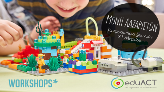 Αυτή την άνοιξη το φιλεκπαιδευτικό μη κερδοσκοπικό σωματείο eduACT σε συνεργασία με το Φεστιβάλ Μονής Λαζαριστών υλοποιεί για πρώτη φορά και στη δυτική Θεσσαλονίκη το πρόγραμμα των εκπαιδευτικών εργαστηρίων ρομποτικής που απευθύνεται σε παιδιά από 6 έως 10 ετών .