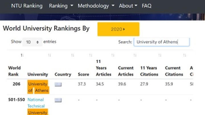 Σε σχέση με το 2019, τα πέντε από τα έξι ελληνικά πανεπιστήμια βελτίωσαν τη θέση τους και έτσι, για το 2020