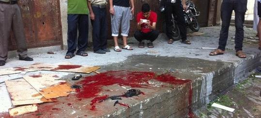 Αίμα είχε πλημμυρίσει το έδαφος στους κήπους του καταυλισμού των προσφύγων μετά την έκρηξη.
