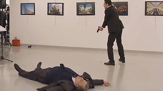 Σύμφωνα με τουρκική εφημερίδα ο ένοπλος φώναξε «Ο Αλλάχ είναι μεγάλος» και στη συνέχεια είπε πως έκανε την πράξη αυτή ως αντίποινα για τις ρωσικές επιχειρήσεις στο Χαλέπι, και ζήτησε να βγουν οι συγκεντρωμένοι έξω από το χώρο. «Στη συνέχεια έριξε μερικές ακόμη σφαίρες στον ξαπλωμένο πρέσβη».