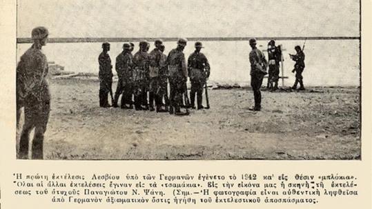 * Φωτογραφία-ντοκουμέντο στην κορυφή: η πρώτη εκτέλεση Λέσβιου πατριώτη από τους Γερμανούς κατακτητές, το 1942. Αρχείο Γ. Γαλέτσα
