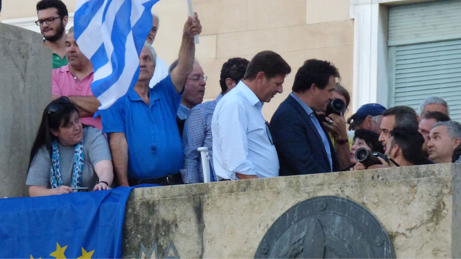 Ένας σημαιοστολισμένος ελληνοευρωπαίος σπάει το άβατο του μνημείου
