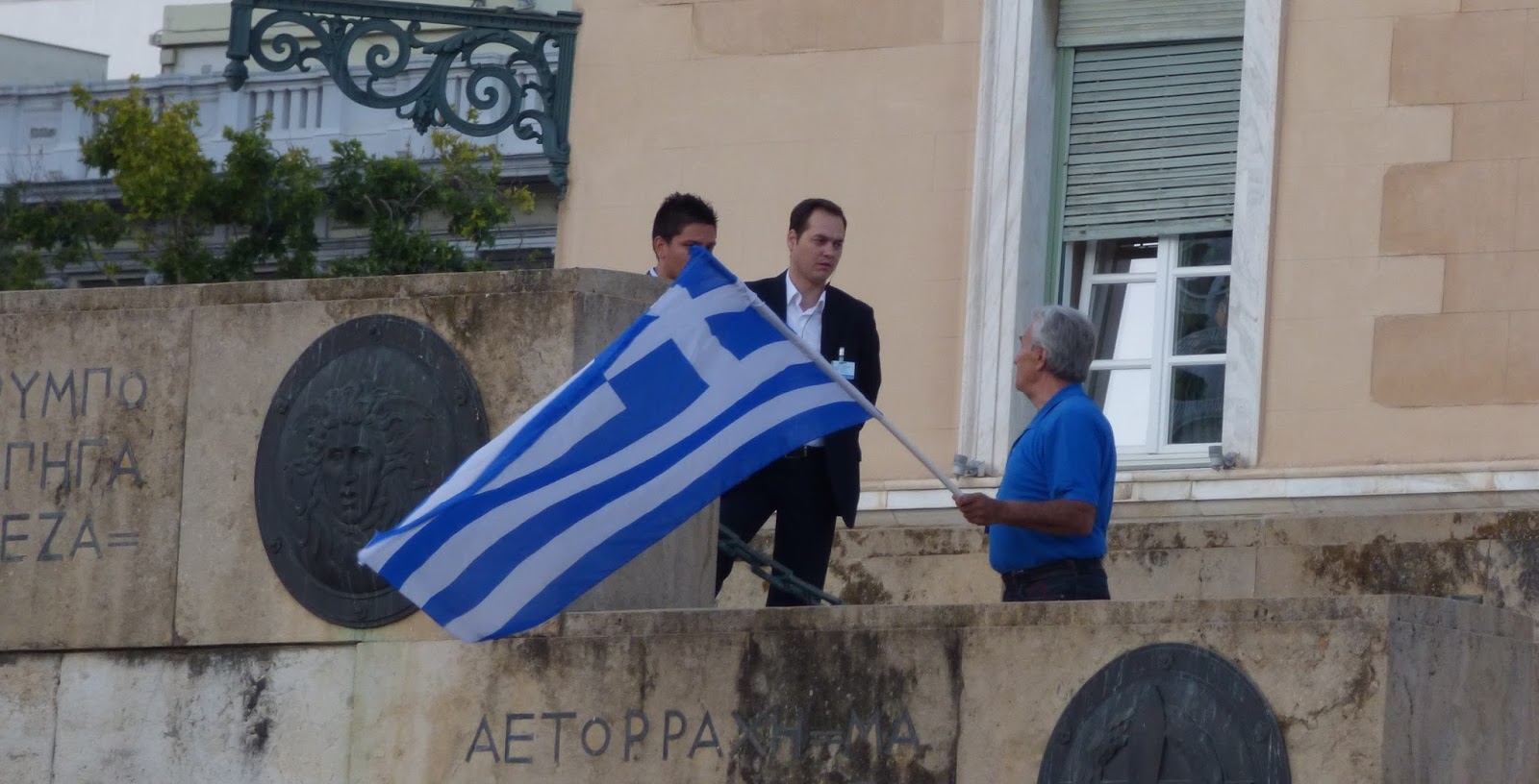 προαύλιο χώρο της βουλής. Οι αστυνομικοί απλά του κάνουν παρατήρηση -αν η