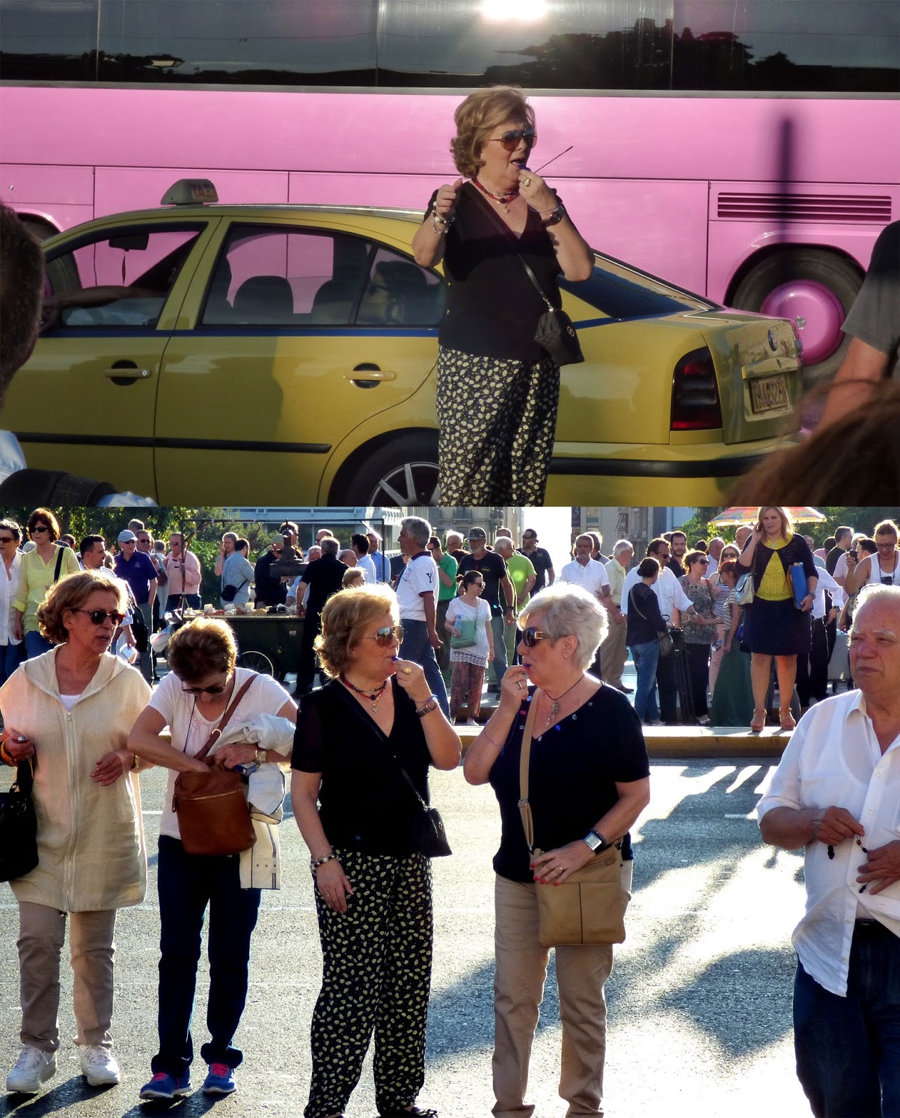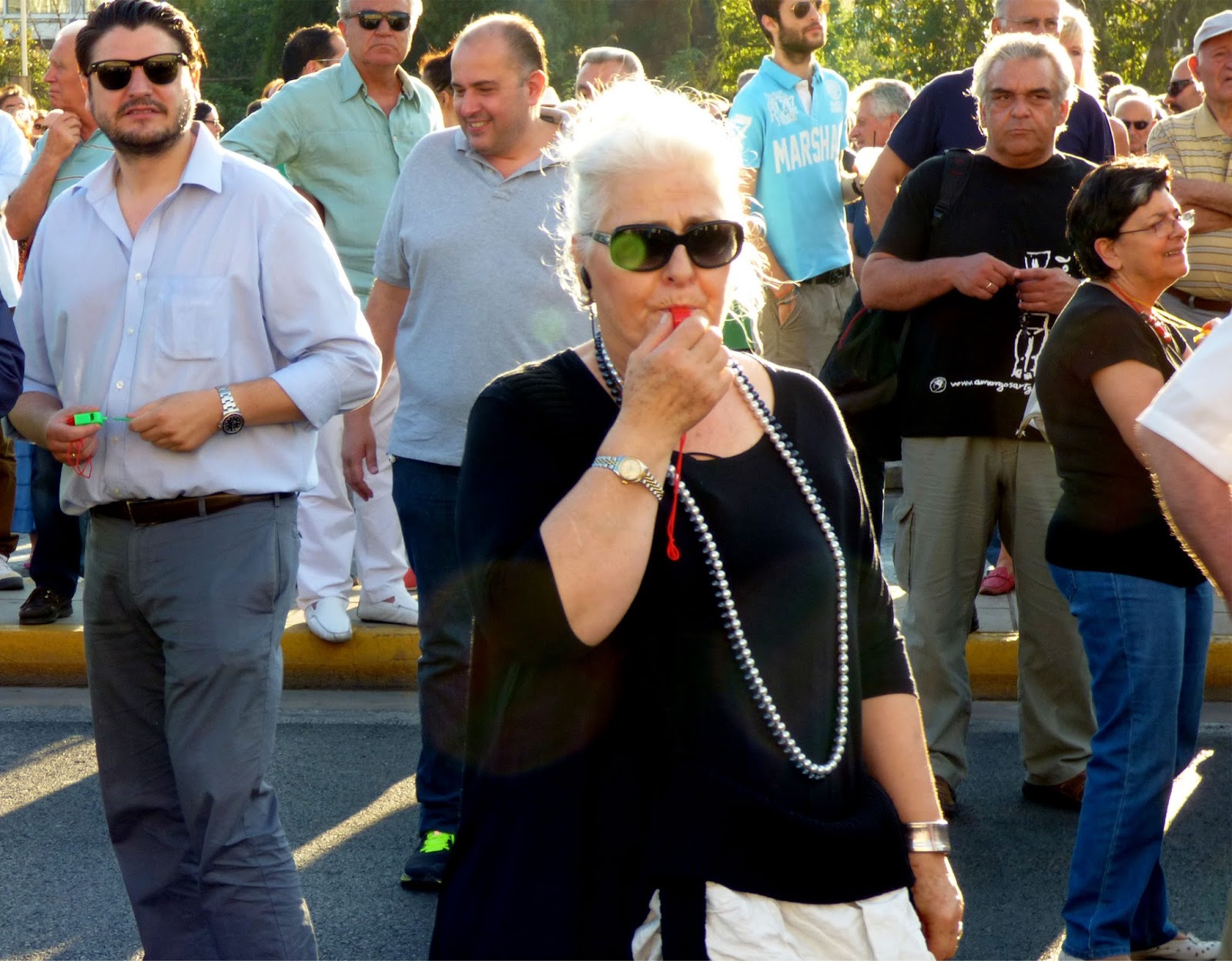 πολύχρωμες σφυρίχτρες, άρχισε να κατακλύζει την Αμαλίας. Κάπου εκεί