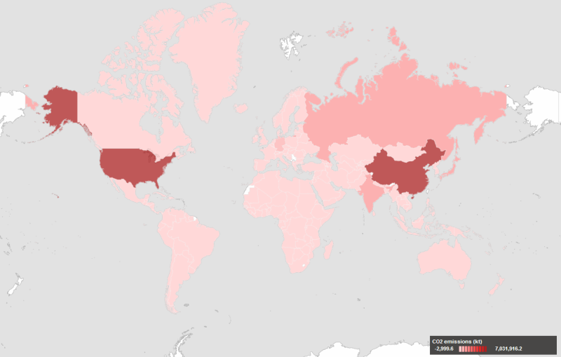 Σχήμα 10. Γεωγραφική κατανομή των εκπομπών CO2 (σε χιλιάδες τόνους) στον πλανήτη [10]