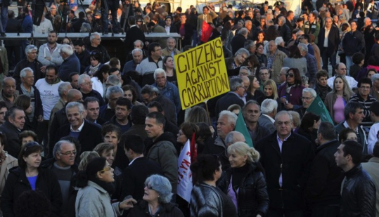 Εκατοντάδες κόσμου βρέθηκαν νωρίτερα έξω από το Συνεδριακό Κέντρο στη Λευκωσία, συμμετέχοντας στο μεγάλο συλλαλητήριο διαμαρτυρίας για τις πολιτικές λιτότητας, το οποίο οργανώνουν οι συνδικαλιστικές και κοινωνικές οργανώσεις, που αποτελούν την Πλατφόρμα «Η κοινωνία αντιδρά και διεκδικεί».