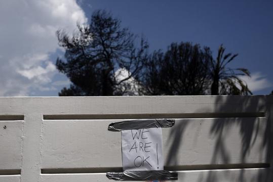 Κάτοικοι του Ματιού έχουν τοιχοκολλήσει σημειώματα στις εξώπορτες των σπιτιών τους, προκειμένου να ενημερώνουν φίλους και διασώστες πως βγήκαν νικητές από αυτήν την μάχη. «We are ok», αναφέρει ένα από αυτά. «Είμαστε όλοι καλά, μην σπάσετε την πόρτα», έγραφε ένα άλλο.