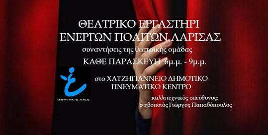 Το Θεατρικό Εργαστήρι των Ενεργών Πολιτών Λάρισας, είναι ανοιχτό σε όλους όσους επιθυμούν να ζήσουν αυτή τη μαγευτική εμπειρία!