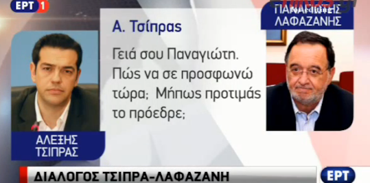 -Τσίπρας: Γεια σου Παναγιώτη. Πως σε προσφωνώ τώρα; Μήπως προτιμάς το πρόεδρε;