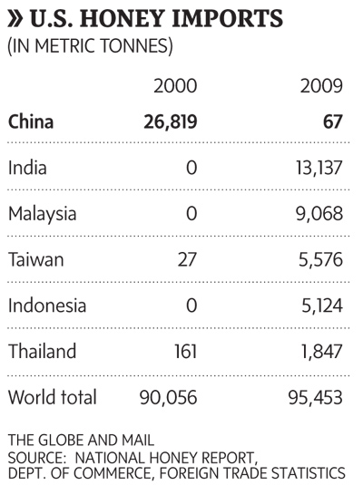 Η τιμή του Κινεζικού μελιού στο μεταίχμιο της χιλιετίας ήταν σχεδόν 50 σεντς το κιλό. Οι Αμερικάνοι μελισσοκόμοι ήταν αδύνατον να ανταγωνιστούν αυτές τις τιμές και έτσι μετά από πιέσεις, το Υπουργείο Εμπορίου των ΗΠΑ για να κρατήσει το εγχώριο προϊόν ανταγωνιστικό, αποφασίζει, στα τέλη του 2001, να επιβάλει δασμούς, ύψους 2,80$ ανά κιλό, στις εισαγωγές Κινεζικού μελιού και ένας πόλεμος ξεκινά. Οι Κινέζοι απαντούν άμεσα τελειοποιώντας μια διαδικασία υπερ-φιλτραρίσματος του μελιού, με την οποία, αφαιρούν όλους τους γυρεόκοκκους απ’ το μέλι, καθιστώντας αδύνατο τον καθορισμό της χώρας προέλευσης και στη συνέχεια διακινούν το μέλι μέσω τρίτων χωρών.