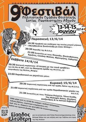 Εκδήλωση:  9ο Φεστιβάλ Πολιτιστικών Ομάδων Φοιτητικής Εστίας του Πανεπιστημίου Αθηνών