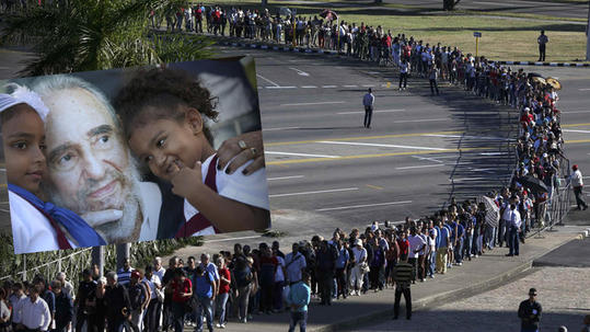 Στην πλατεία της Επανάστασης, εκεί όπου ο Φιντέλ Κάστρο εκφωνούσε πολλούς από τους διάσημους λόγους του, σχηματίζουν τώρα τεράστιες ουρές οι Κουβανοί για να αποτίσουν φόρο τιμής στον ηγέτη τους.