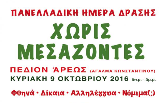Σας καλούμε την Κυριακή 9 Οκτωβρίου 2016 9πμ-3μμ στο Πεδίον του Άρεως στο πλαίσιο της πανελλαδικής δράσης Χωρίς Μεσάζοντες.