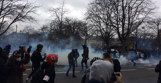 Συμπλοκές  μεταξύ μαθητών και αστυνομικών και σύννεφα από δακρυγόνα χθες το Παρίσι κατά τη διάρκεια συλλαλητηρίου κατά της αστυνομικής βίας.