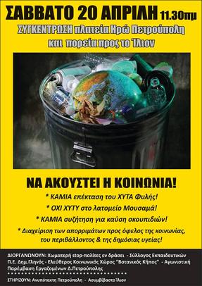 Χωματερή stop-πολίτες εν δράσει – Σύλλογος Εκπαιδευτικών Π.Ε. «Δ.Γληνός» – Αγωνιστική Παρέμβαση Εργαζομένων Δ.Πετρούπολης – Ελεύθερος Κοινωνικός Χώρος «Βοτανικός Κήπος»