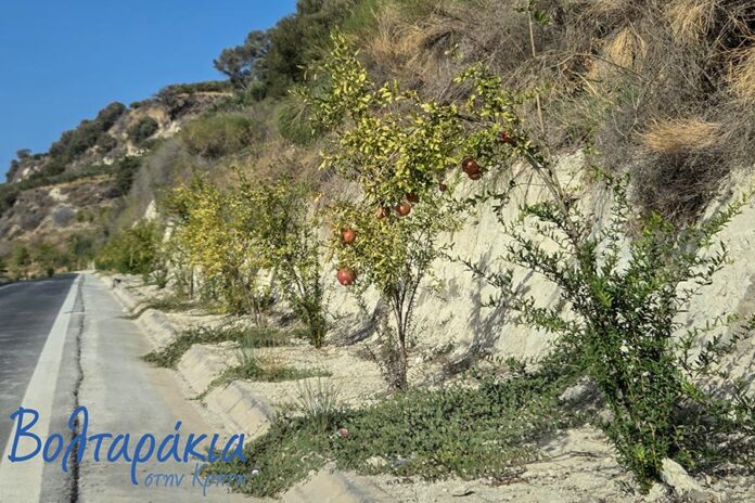 Πρόσφατα, όμως, στο δρόμο Ηράκλειο – Κρουσώνας, διαπιστώσαμε κάτι διαφορετικό: περισσότερες από 100 ροδιές φυτεμένες κατά μήκος του δρόμου. Αν και τα δέντρα είναι ακόμα μικρά και δεν έχουν πολλούς καρπούς, η εικόνα τους εντυπωσιάζει και η ιδέα μας άρεσε πολύ… Κάτι που να καρποφορεί! Και να δίνει τον καρπό του, στον περαστικό, στο διαβάτη, στον φτωχό…