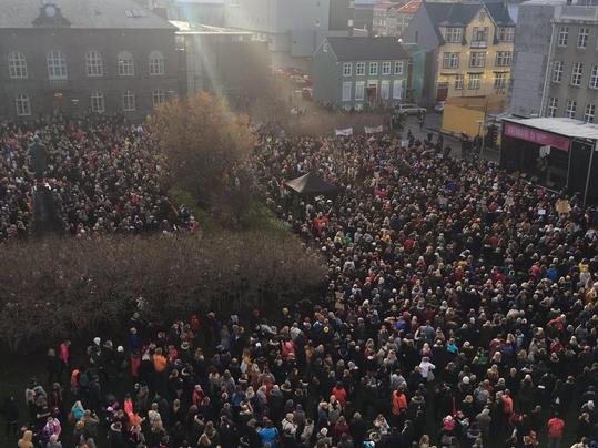 Με σύνθημα “Καμία γυναίκα δεν επιλέγει να πληρώνεται λιγότερο από τους άντρες. Καμία γυναίκα δεν επιλέξει να αισθάνεται καταπιεσμένη”, χιλιάδες γυναίκες στην Ισλανδία άφησαν τις δουλειές τους και στις 14:38 κατέβηκαν στους δρόμους για να διαμαρτυρηθούν ενάντια στην μισθολογική ανισότητα ανάμεσα στα δύο φύλα.