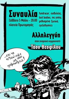 Το Σάββατο 5 Μαΐου συναυλία αλληλεγγύης για την κάλυψη των δικαστικών εξόδων του Τάσου θεοφίλου στην πλατεία Πρωτομαγιάς στις 20:00