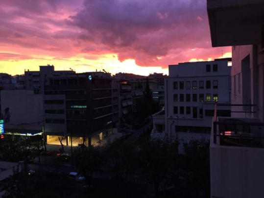 Με ένα ασυνήθιστο θέαμα βρέθηκαν αντιμέτωποι όσοι είχαν ξυπνήσει από τα… χαράματα σήμερα, αφού γύρω στις 07:30 και λίγο πριν ξεσπάσει η καταιγίδα ο ουρανός είχε πάρει ένα πορτοκαλοκόκκινο χρώμα.