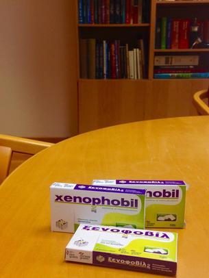 Και μετά είδα το όνομα: “Ξενοφοβίλ, σατιριζίνη διαπολιτισμικότητας – ανακουφίζει αποτελεσματικά από την ξενοφοβία”!