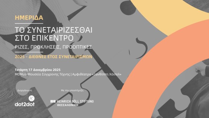 Η Dot2Dot Κοιν.Σ.Επ., με την υποστήριξη του Ιδρύματος Heinrich Böll Stiftung Greece – Γραφείο Θεσσαλονίκης, διοργανώνει ολοήμερη ημερίδα με αφορμή την ανακήρυξη του 2025 ως Διεθνές Έτος Συνεταιρισμών από τον ΟΗΕ και φέρνει το συνεταιρίζεσθαι στο επίκεντρο.