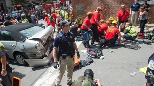 Παράλληλα, μετά τις συμπλοκές ένα όχημα έπεσε πάνω σε ομάδα αντιρατσιστών διαδηλωτών. Σύμφωνα με αξιωματούχο τοπικού νοσοκομείου, ένα άτομο σκοτώθηκε και 19 τραυματίστηκαν από το συμβάν.