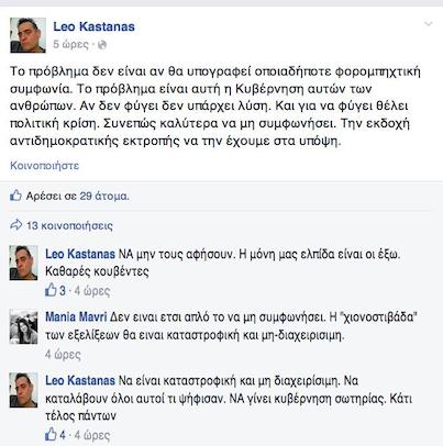 Αυτό έγραψε στο προσωπικό του προφίλ στο Facebook ο Λεωνίδας Καστανάς, Υπεύθυνος του Τομέα Πρωτοβάθμιας και Δευτεροβάθμιας εκπαίδευσης στο Ποτάμι